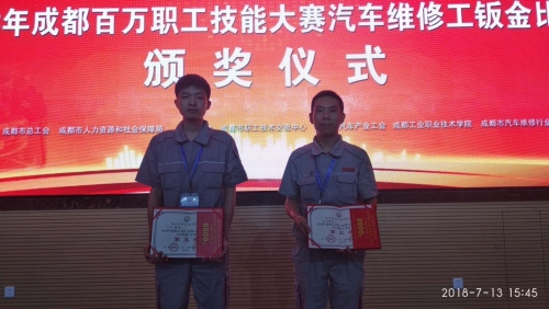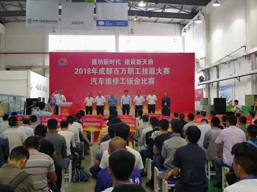 7月11日-13日,由市总工会、市人力资源和社会保障局主办的“建功新时代 建设新天府”2018年成都百万职工技能大赛汽车维修工钣金项目比赛在成都工业职业技术学院隆重举行。本次大赛作为汽车维修钣金项目一类赛事,参赛面广。比赛采用“理论答题30%+实操70%”模式,实操部分要求选手们要分别在半小时和四十分钟的时间内完成汽车门板修复和板件更换两个项目的操作。