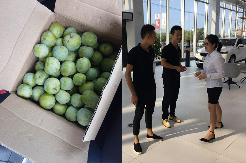 检修完毕,我们同事打算为客户试车,客户不让,非要拉到家里去坐一会儿,同时偷偷指使家人去自家果园为嘉顺员工摘新鲜的水果。小憩一会儿,何女士的家人也回来了,带上了一箱垂涎欲滴、远近闻名的的茂县李子,他们的心意和感动溢于言表。