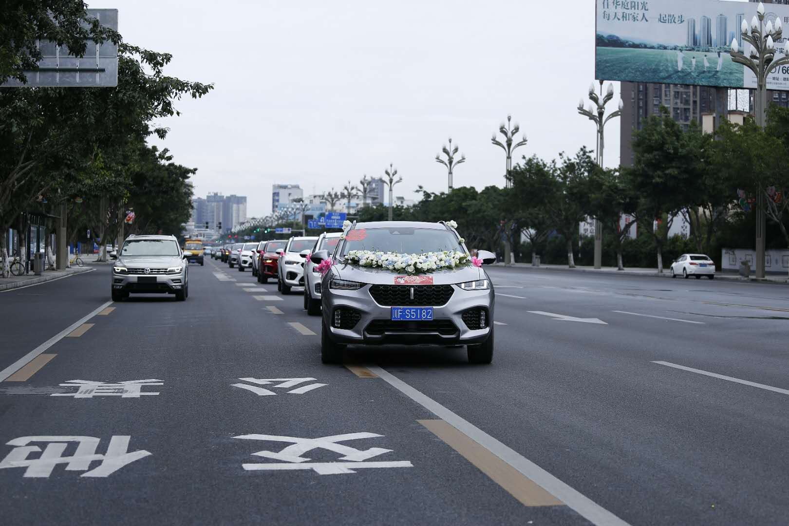 长城WEY做为主婚车,时尚大气的外观,吸引路人纷纷驻足停留、侧目关注,10多辆WEY组成的婚车队浩浩荡荡地行驶在市区,成为德阳街头成一道靓丽的风景线。甜蜜的歌声流淌着,每一辆车内都充满着喜悦的气氛,每一个车主脸上都洋溢着愉悦的微笑,那都是对新人最好的祝福。
