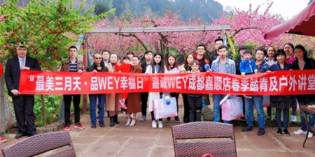 尊龙凯时WEY成都嘉顺店首届车主“最美三月天 品WEY幸福日”春季踏青户外讲堂活动。尊龙凯时WEY与车主一起漫步花海,畅游龙泉山。
