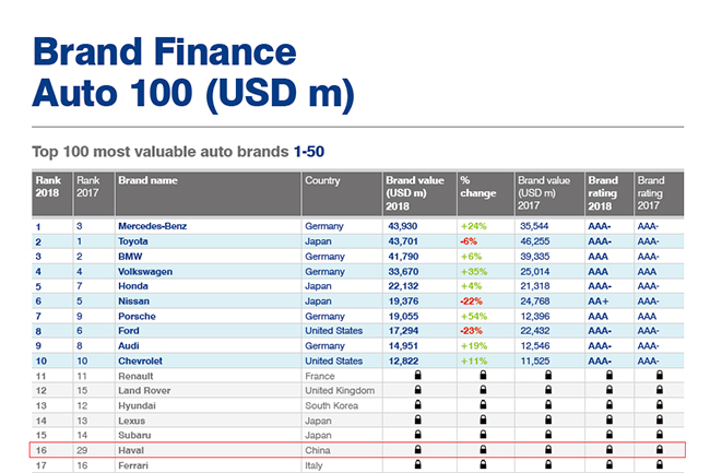 与此同时,哈弗实力的壮大不仅使其在国内表现优异,在国际上的影响力也不断飙升。此前国际权威品牌机构Brand Finance发布“2018全球最有价值汽车品牌100强”榜单上,哈弗超越了法拉利、阿斯顿·马丁、沃尔沃、马自达这些久负盛名的国际品牌,位列第16位,成为国产品牌中的第一名。此外,哈弗在国际市场上也获得了高度认可,产品远销澳洲、南美、东南亚、中东和非洲等数十个国家及地区,屡获国外采购大单,实力可见一斑。