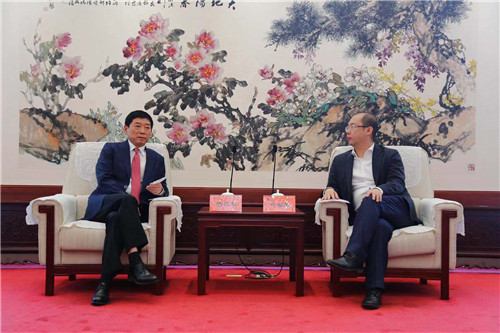 长城汽车董事长魏建军(左)会见人民网总裁叶蓁蓁(右)