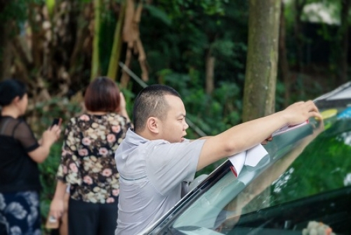 工作人员早已在准备好,进行签到,贴车帖,指引客户停车等。
