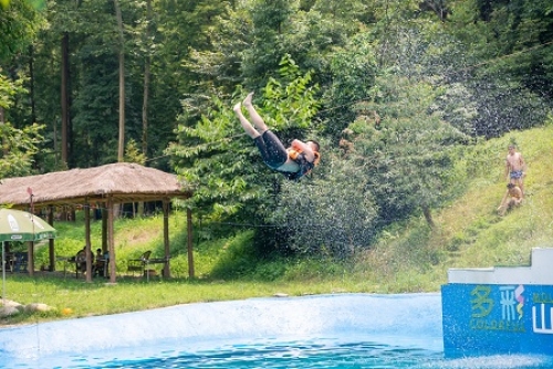 从高处顺溜而下,体验速度与激情!最刺激的是在腾空而起的那一瞬间!迎着清凉的风从幽深的树林中穿梭而下,极致体验!