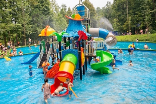 滑水乐园有比较刺激的四处滑道,两个儿童水上乐园,1处游泳池