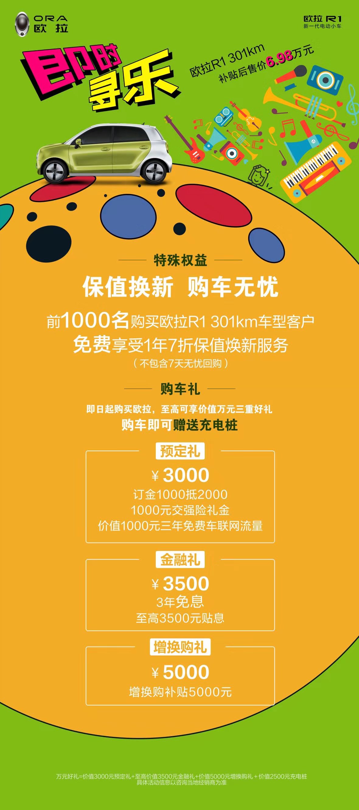 1000名限量抢购!欧拉R1 301公里续航版专属大礼“即时寻乐”