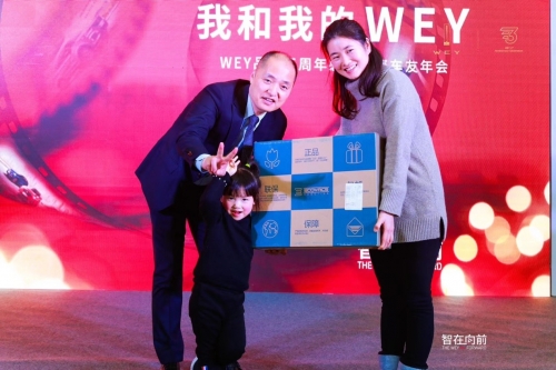 为了感恩各位WEY车友们一如既往的支持,边吃边给车友们抽奖,这位客户带着女儿去抽奖,小朋友的手气简直好到爆棚,一抓,抓到自己的车牌号,抽走最大的礼品。