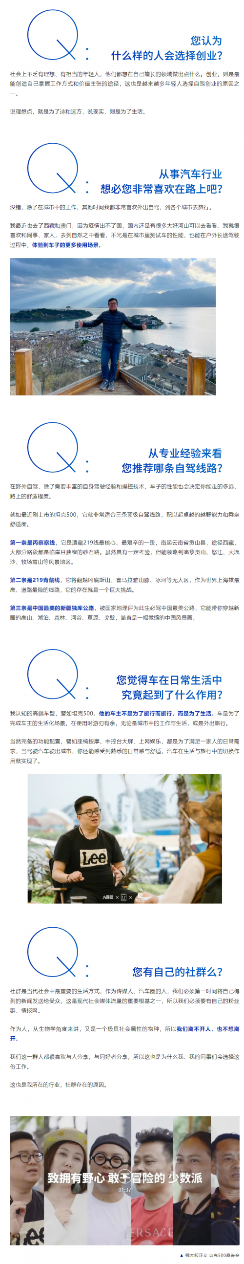 对话成都创业者,越野嘉本次邀请了三位不同行业却有相似经历的主理人,但如此身份的,还有我们投入现场参与的坦克500的用户们,你们也都是不同行业的创业者,有着社会责任感以及品牌使命的创造者。选择了坦克500是一种精神,也是你们的一种情感链接,因为我们永远相信:创造受人尊敬的品牌 · 致有野心、敢冒险的少数派!